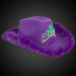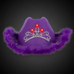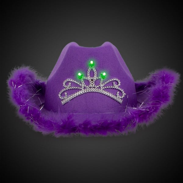 Saddle up and shine brighter than the rest with our LED Purple Cowboy Hat with Tiara from the HAT550EA category. Whether you're channeling your inner cowgirl or adding a splash of color to your outfit, this Cowboy Hat is the perfect accessory. Crafted with premium materials, it combines the classic charm of a Cowboy Hat with dazzling LED lights that ensure you won't go unnoticed. Elevate your style and stand out at any event with the added sparkle of a tiara, because every cowgirl deserves to feel like royalty.