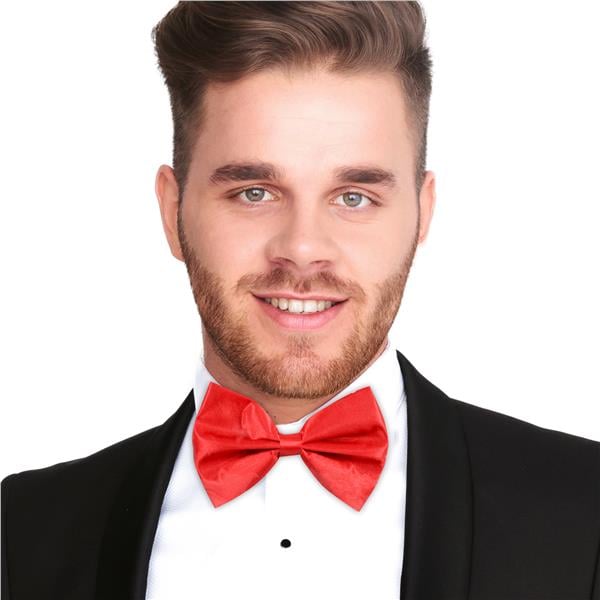 **Red Satin Bow Tie - Elevate Your Ensemble with a Pop of Bright Color**