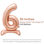 Rose Gold Number 6 Shaped Standing Foil Balloon 30", Packaged
