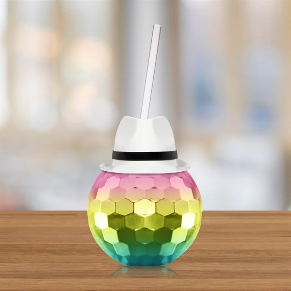 Step into the spotlight with our vibrant White Fedora Hat Rainbow Disco Ball Cup with Straw, a spectacular blend of style and functionality that's guaranteed to elevate any occasion. This dazzling product merges the classic charm of a White Fedora Hat with the playful allure of a Rainbow Disco Ball Cup. Crafted with a handy straw for easy sipping, this cup is designed for fun lovers who enjoy making a statement. Perfect for bringing a pop of color and excitement to your day, this charming accessory is both a conversation starter and a must-have party item. Whether you're getting ready for a dance party or a casual gathering, this Disco Ball Cup will ensure every sip is as fun as the moment itself!