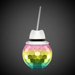 White Fedora Hat Rainbow Disco Ball Cup with Straw