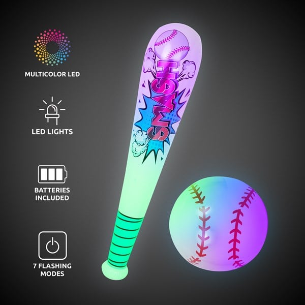 Add glowing fun to nighttime baseball with the LED Inflatable Baseball & Bat Set! This innovative light-up baseball set features bright LED illumination, perfect for nighttime games, parties, and outdoor fun.