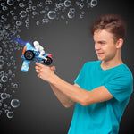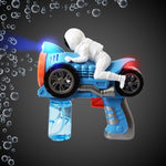 Whether you're hosting a party, outdoor celebration, children's event, or want exciting bubble entertainment, this premium LED blue motorcycle bubble gun provides hours of bright, bubble-filled fun with blue LED lighting effects.