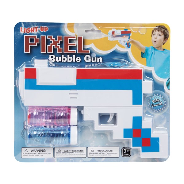Unit price perAdd patriotic, glowing bubble fun to your celebration with the LED Patriotic Pixel Bubble Gun! This exciting bubble gun features bright LED illumination with patriotic pixel design, perfect for Fourth of July, Memorial Day, and American celebrations.