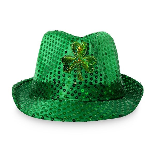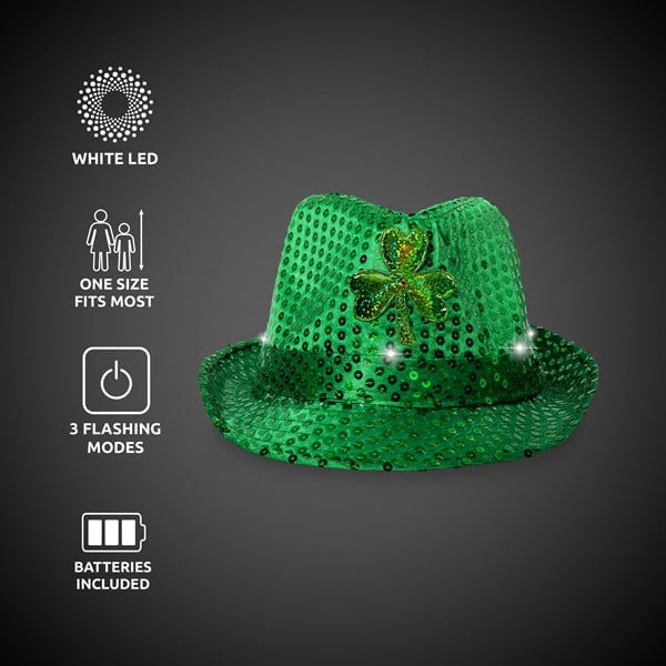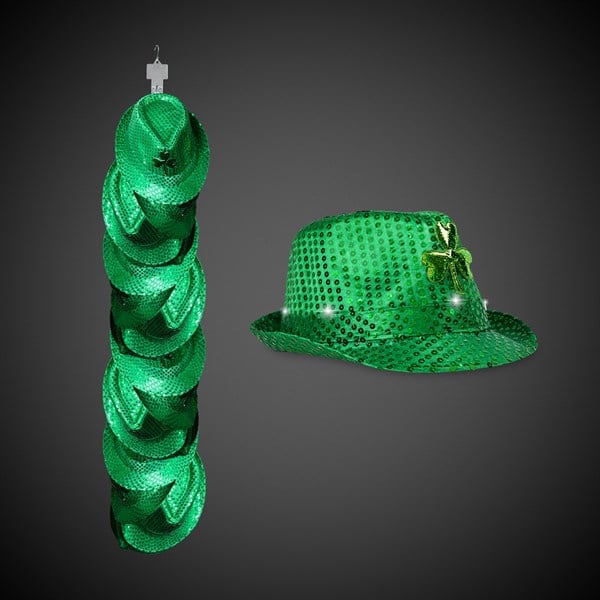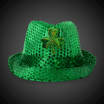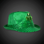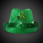 LED Green Shamrock Sequin Fedora Hats