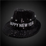 Celebrate in style with our dazzling LED Happy New Year Black Fedora, perfect for lighting up any New Year's Eve event! This exceptional fedora hat combines sophistication with a playful twist, featuring sparkly sequins that shimmer under party lights. Designed for those who love to make a statement, our fedora captures the essence of New Year celebrations, ensuring you're the center of attention at any festivity. Whether you're hosting an epic New Year's bash or attending a glitzy gathering, the Happy New Year Fedora is your ultimate accessory for unforgettable moments.