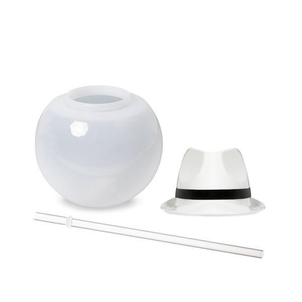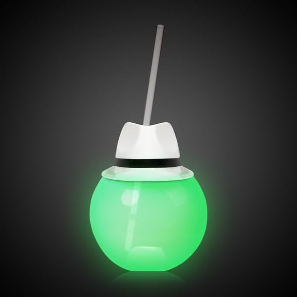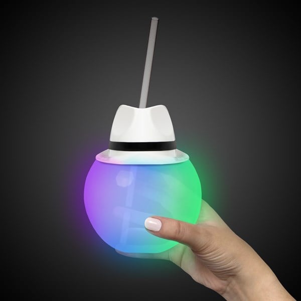 LED White Fedora Hat 20 oz. Ball Cup with Straw