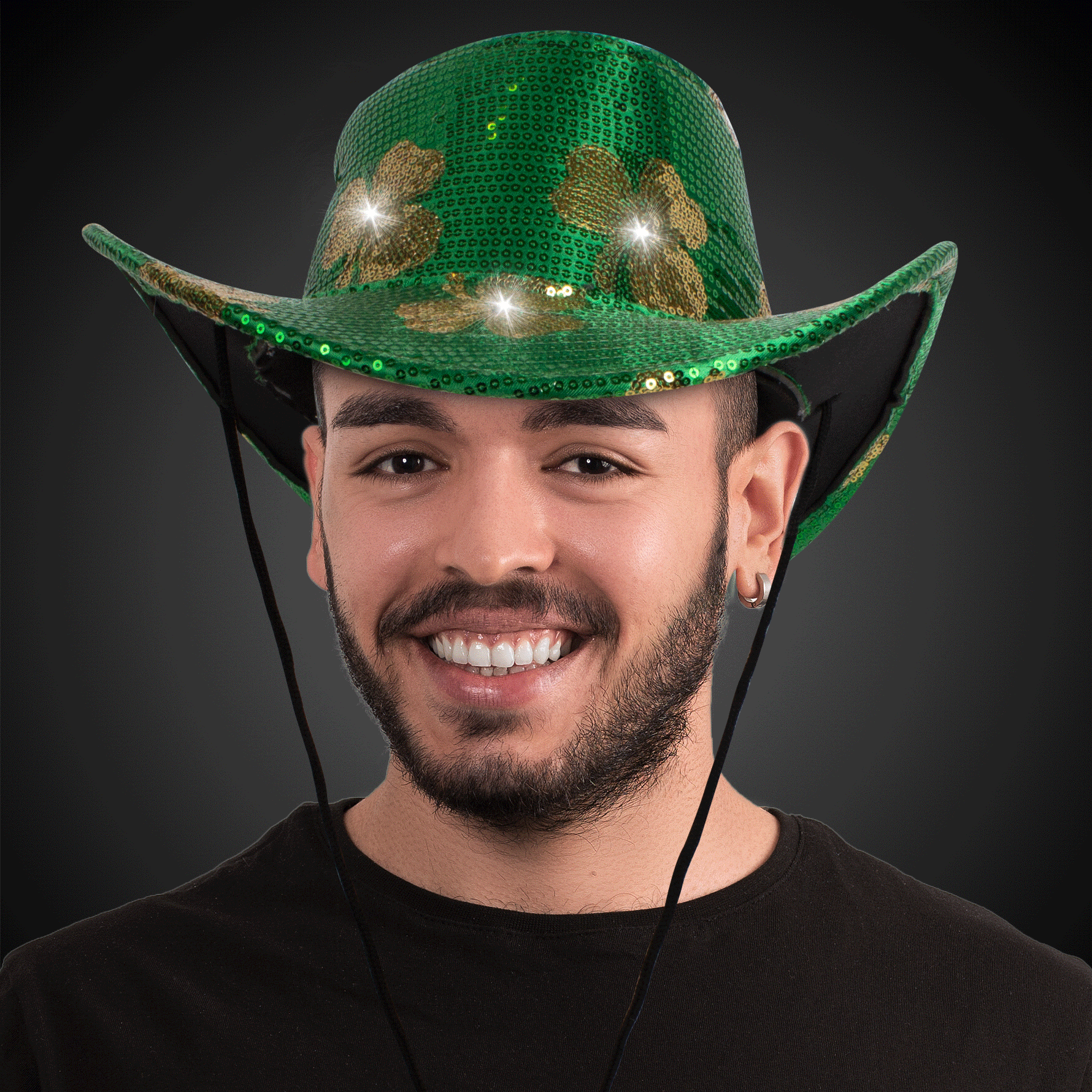 Unit price per**LED Sequin Shamrocks Cowboy Hat - Shine Like a Star at Every Parade!**
