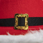 - Eye-catching red felt adorned with white trim and a traditional Santa buckle.