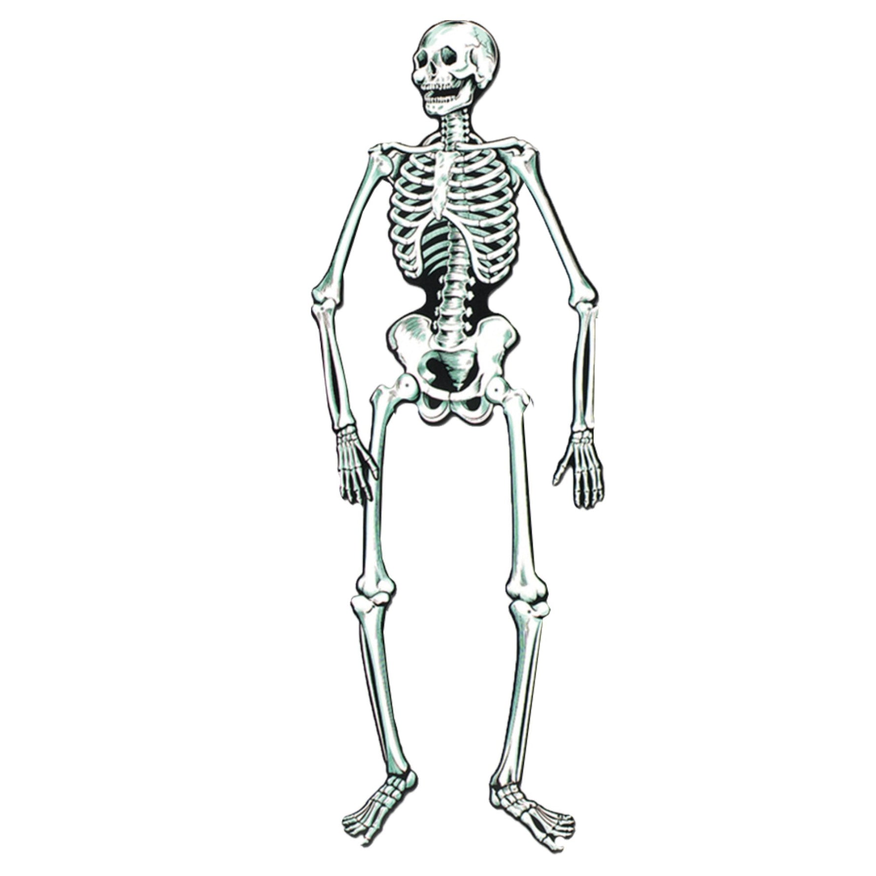 Welcome to a spine-chilling addition to your Halloween décor: the Skeleton Jointed Cutout. This masterfully articulated masterpiece showcases a series of head bones, sinewy rib cages, and delicate toe bones, creating an authentic skeleton appearance that's sure to enthrall and terrify all who dare to cross its path. Perfectly crafted for those who appreciate classic yet haunting themes, this flexible skeleton decoration is the perfect way to elevate your seasonal decorations, casting eerie shadows while demonstrating a macabre sense of style. Enhanced with jointed limbs, this cutout is designed to bend in various ways, allowing you to animate your scenes with unparalleled authenticity.