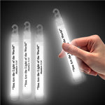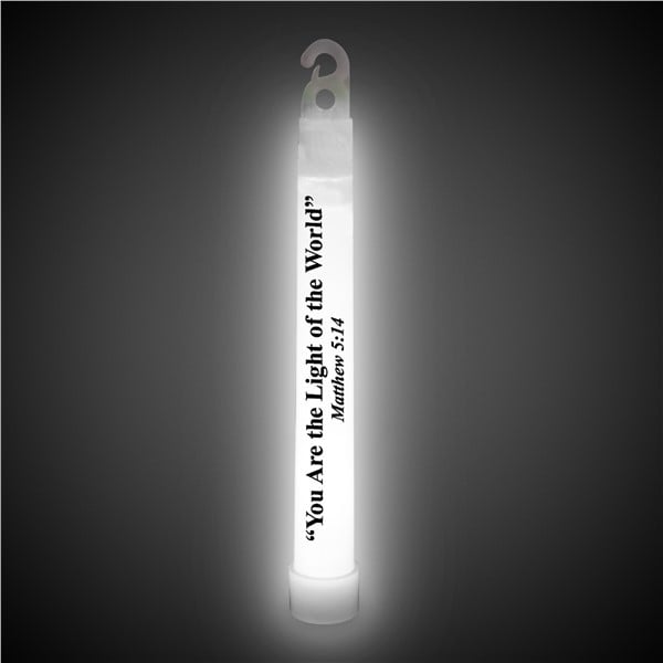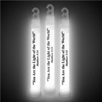 Illuminate your faith with Matthew 5:14 White 6" Glow Sticks! These inspirational glow sticks feature the powerful scripture "You are the light of the world" and deliver brilliant white illumination, perfect for church events, youth groups, and faith-based celebrations.