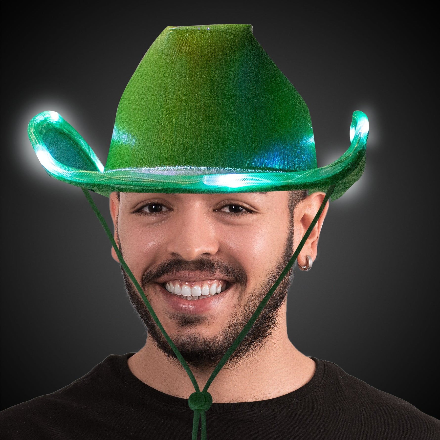 LED Green Iridescent Cowboy Hat