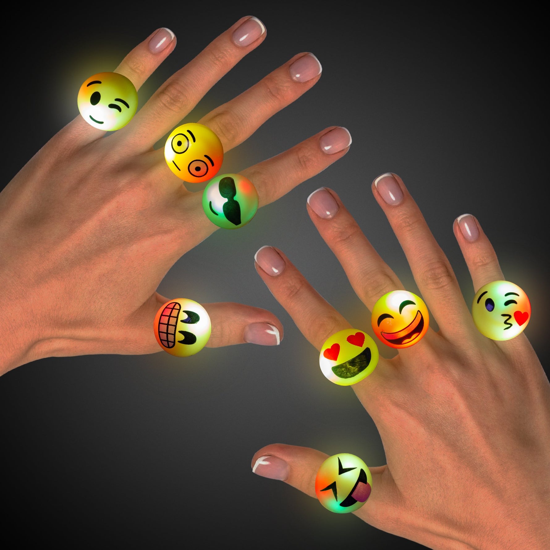 Unit price per**Illuminate Your Party with LIT1417UN LED Emojicon Jelly Rings**