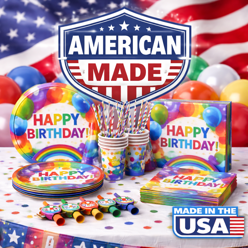 We’re proud to share that approximately 95% of our paper goods are made right here in the USA, supporting local manufacturing and helping create countless jobs and opportunities across the country. By producing the majority of our party supplies domestically, we’re able to maintain high quality standards while also contributing to American communities and strengthening the workforce that brings our products to life.