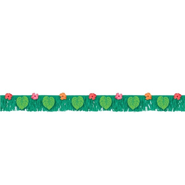 - Eye-catching design with lush, green fringe perfect for tropical-themed events.